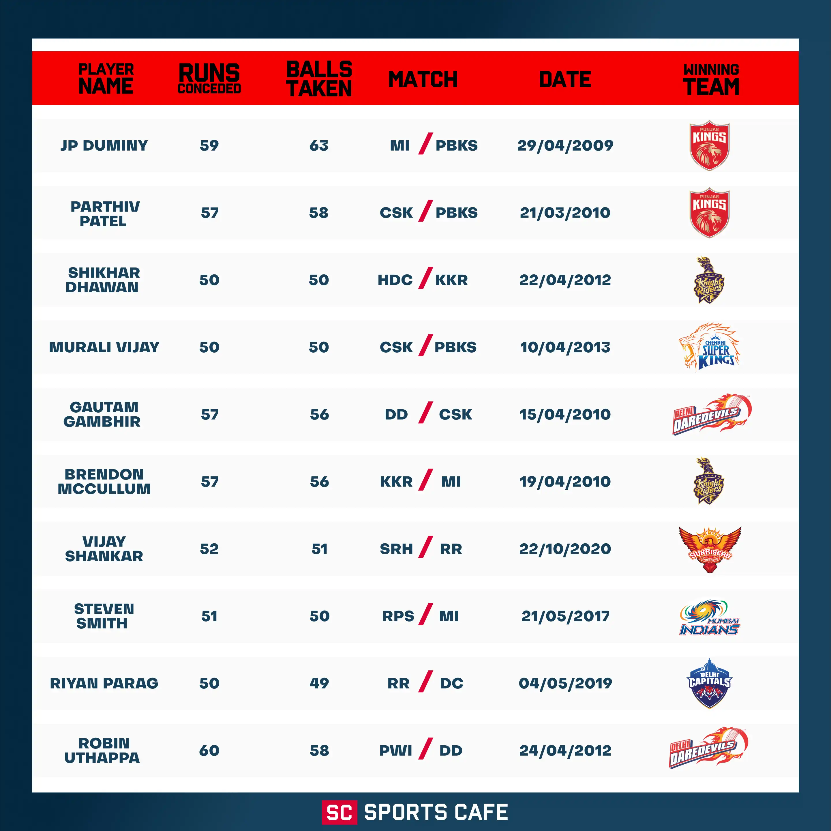 The Indian Premier League (IPL) has always been known for its aggressive batting, where the batters have been able to dominate with high-scoring matches and quick fifties. However, there have also been a few instances in the game where players might have forgotten that the game is being played in the T20 format. This is among the unusual records in the fast-paced T20 format, but a few players have managed to get their names to this list. Slow fifties could come under different situations, such as a challenging pitch, dominant bowling, or anchoring the innings when quick wickets have fallen down. In this blog, we will be taking a look at some of the slowest half-centuries in IPL history.