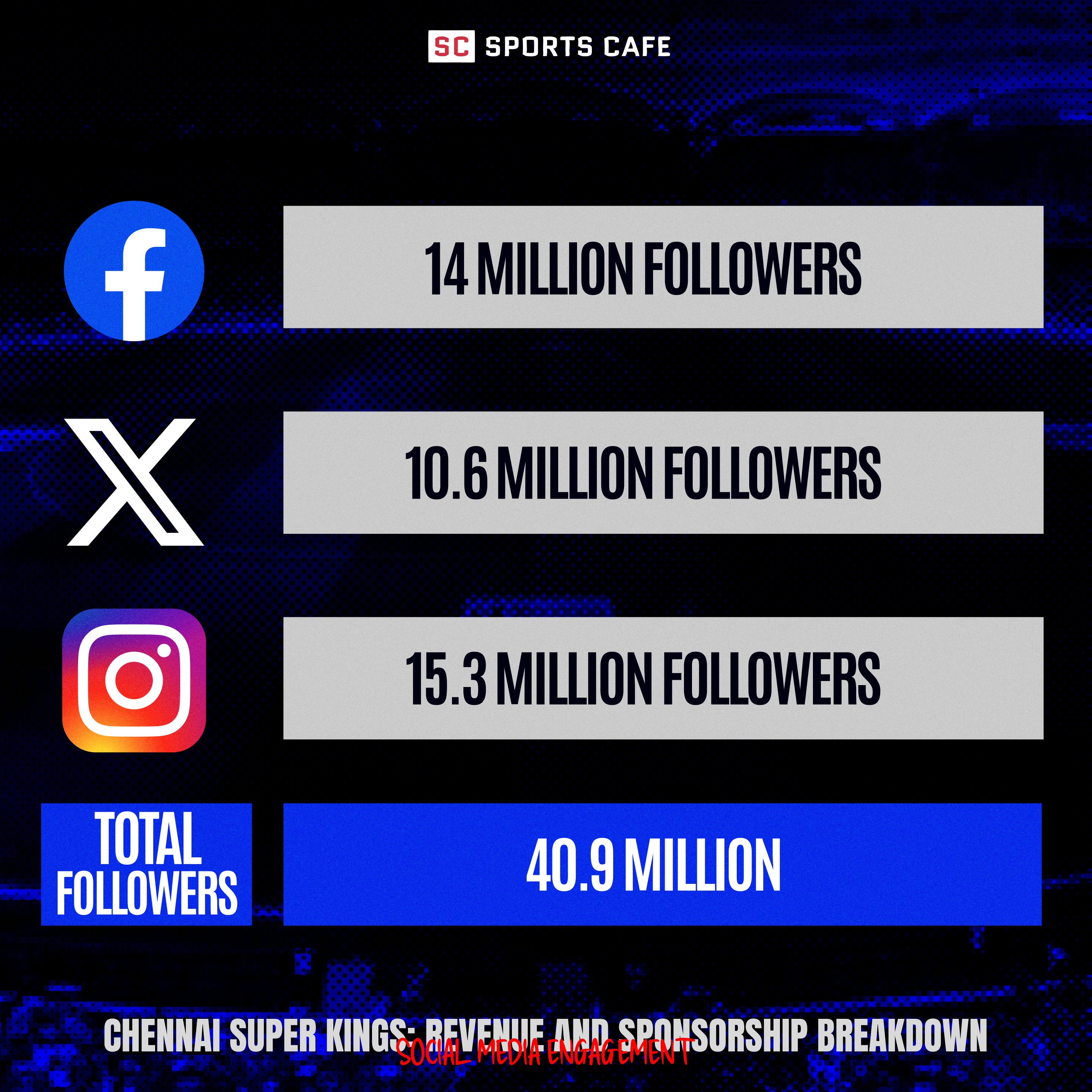 Chennai Super Kings is active on social media platforms and has a large fan base. The team has 40.9 million followers across Instagram, Facebook, and Twitter.