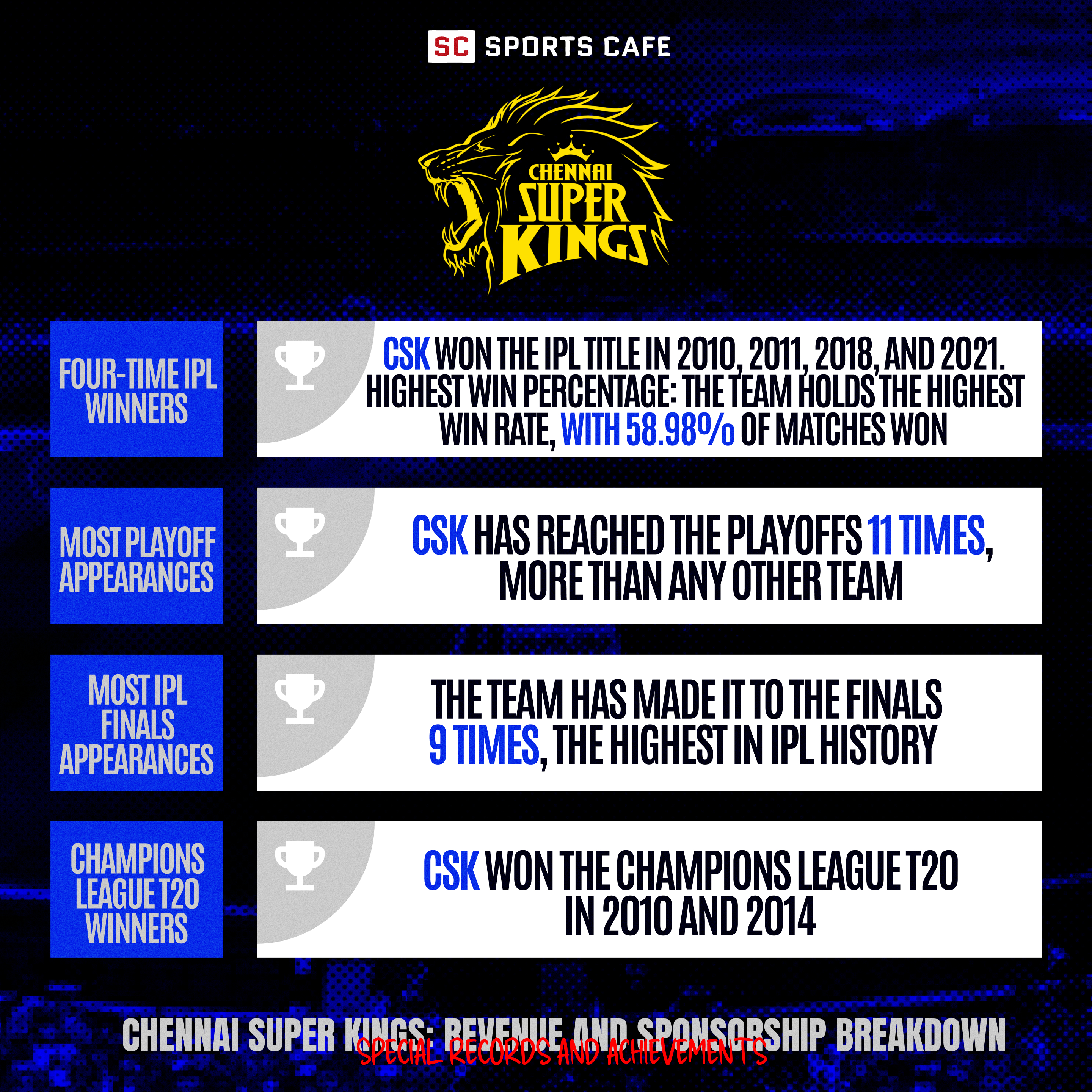Chennai Super Kings also hold several records in the IPL. These achievements highlight the team's success and their dominance in the league:
