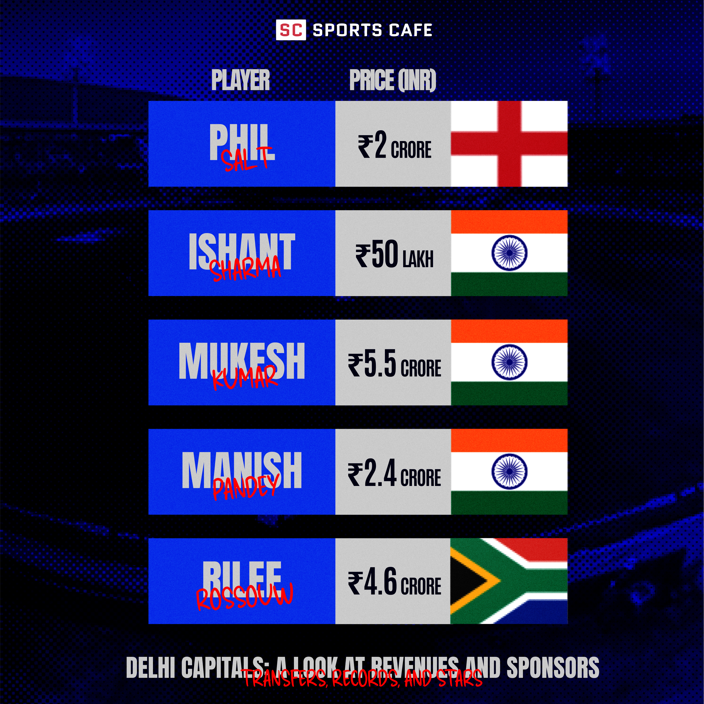- On March 15, 2024, the team signed Australian Jake Fraser-McGurk to replace injured Lungi Ngidi.