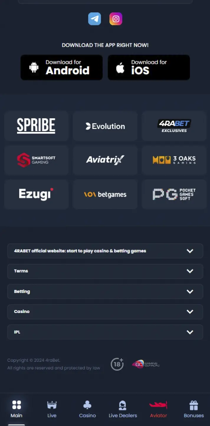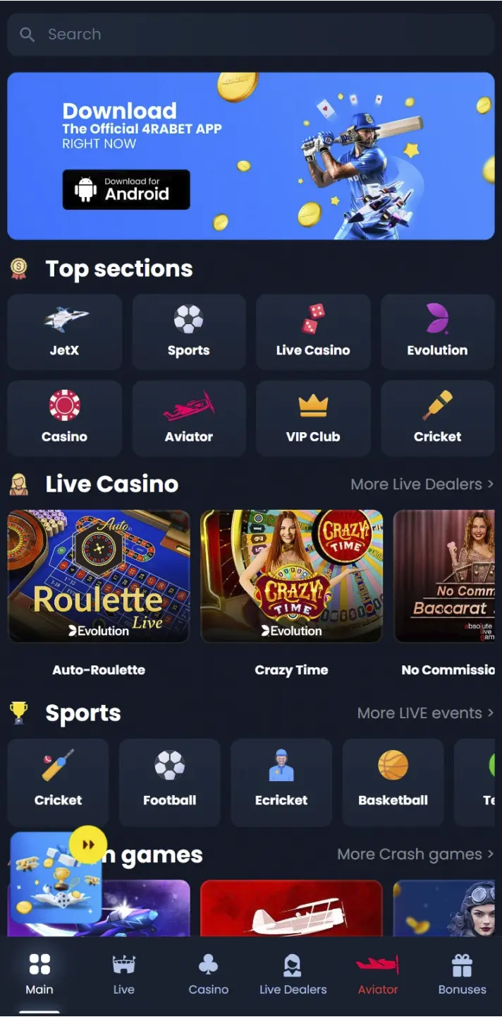 Go to the official 4rabet website using our link, locate the mobile app section, and download the apk from there.