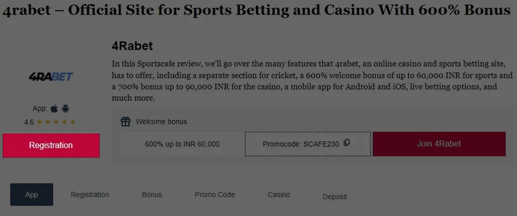 In this Sportscafe review, we take a look at the many features that 4rabet, an online casino and sports betting site, offers, including a separate section for cricket, a welcome bonus of 700% up to INR 20,000 for sports and a 150% welcome bonus up to INR 10,000 for slots, a mobile app for Android and a PWA version for iOS, the ability to place live bets and much more.