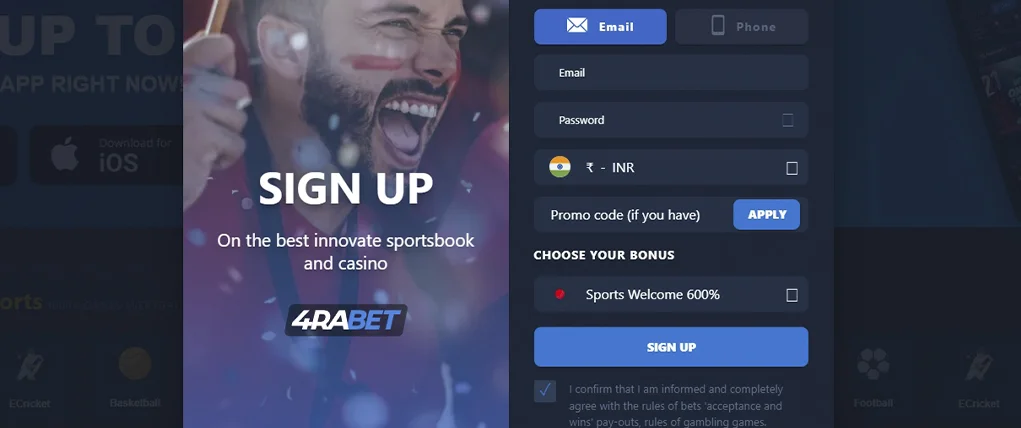 Simply follow the instructions below to reap the benefits of one of 4rabet's welcome bonuses for Indian players: