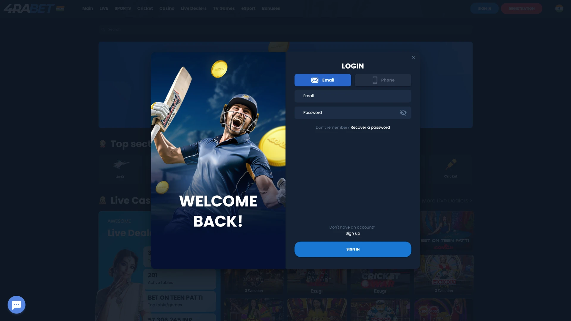 4rabet is still a relatively new betting platform as it was founded in 2018, but it has quickly gained popularity among players from India. It accepts Hindi as a language option and has a lot to offer, such as its first deposit bonuses, the many payment systems to choose from such as UPI, PhonePe, PayTm and others, a separate section for cricket, and many live events that you can place your bets on such as the Indian Premier League. Thus, thanks to its functionality, bonus program, the company is constantly included in the ratings of the cricket betting websites and the best football betting sites, best badminton betting sites, tennis betting sites, olympic betting sites and other ratings.